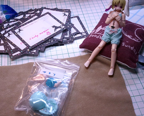 「キャンディメテオ購買部」にて「宇宙うさヘッド」を1点お買い上げいただくと、このような状態でのお届けとなります。ヘッド1つ分のパーツがビニール小袋1つに納められています。
