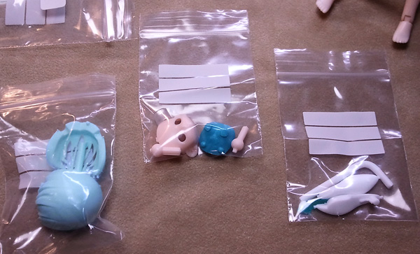 内袋は平均3つほど、髪パーツ、顔&ジョイントパーツ、クリアーパーツや耳などのアクセサリーパーツ。